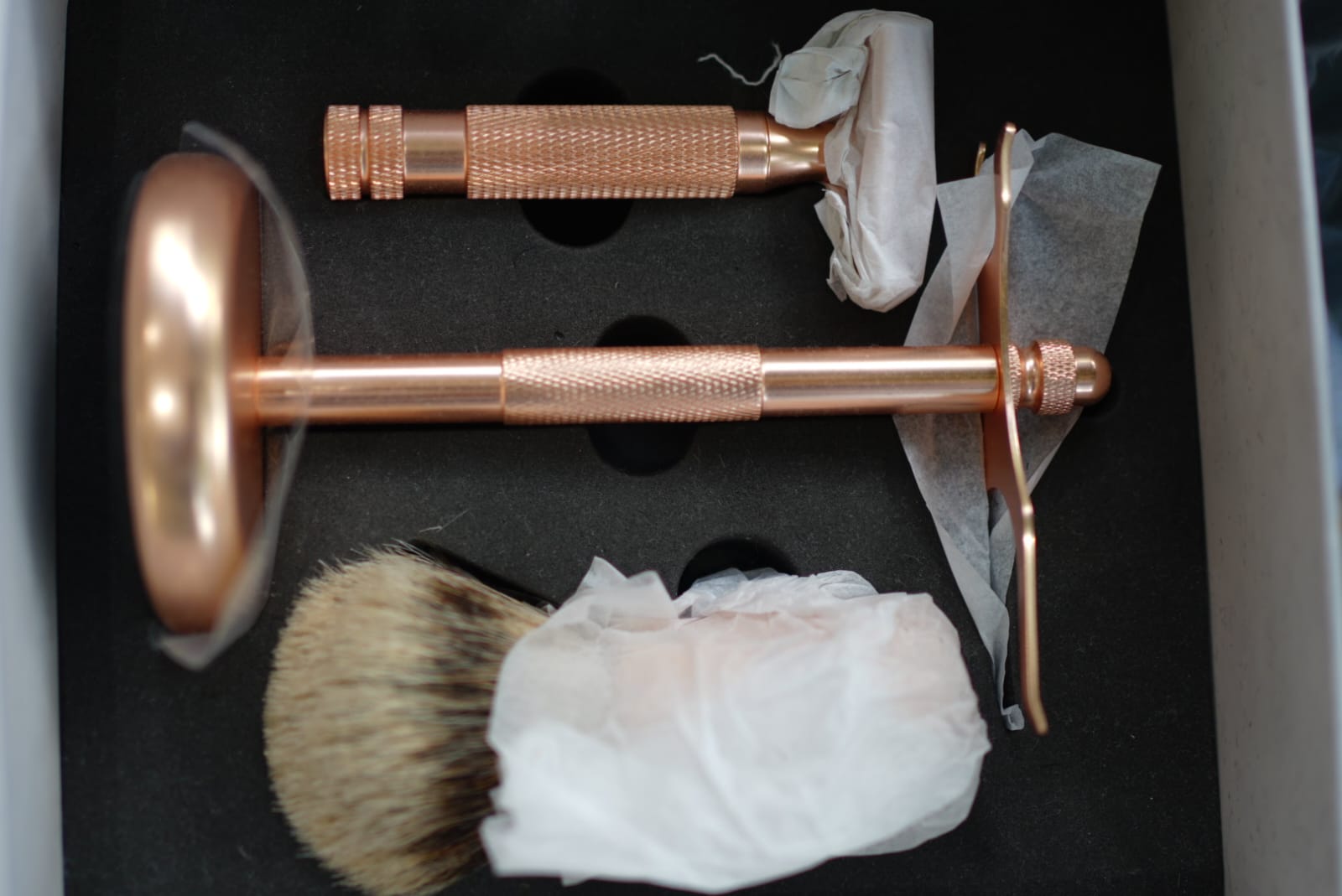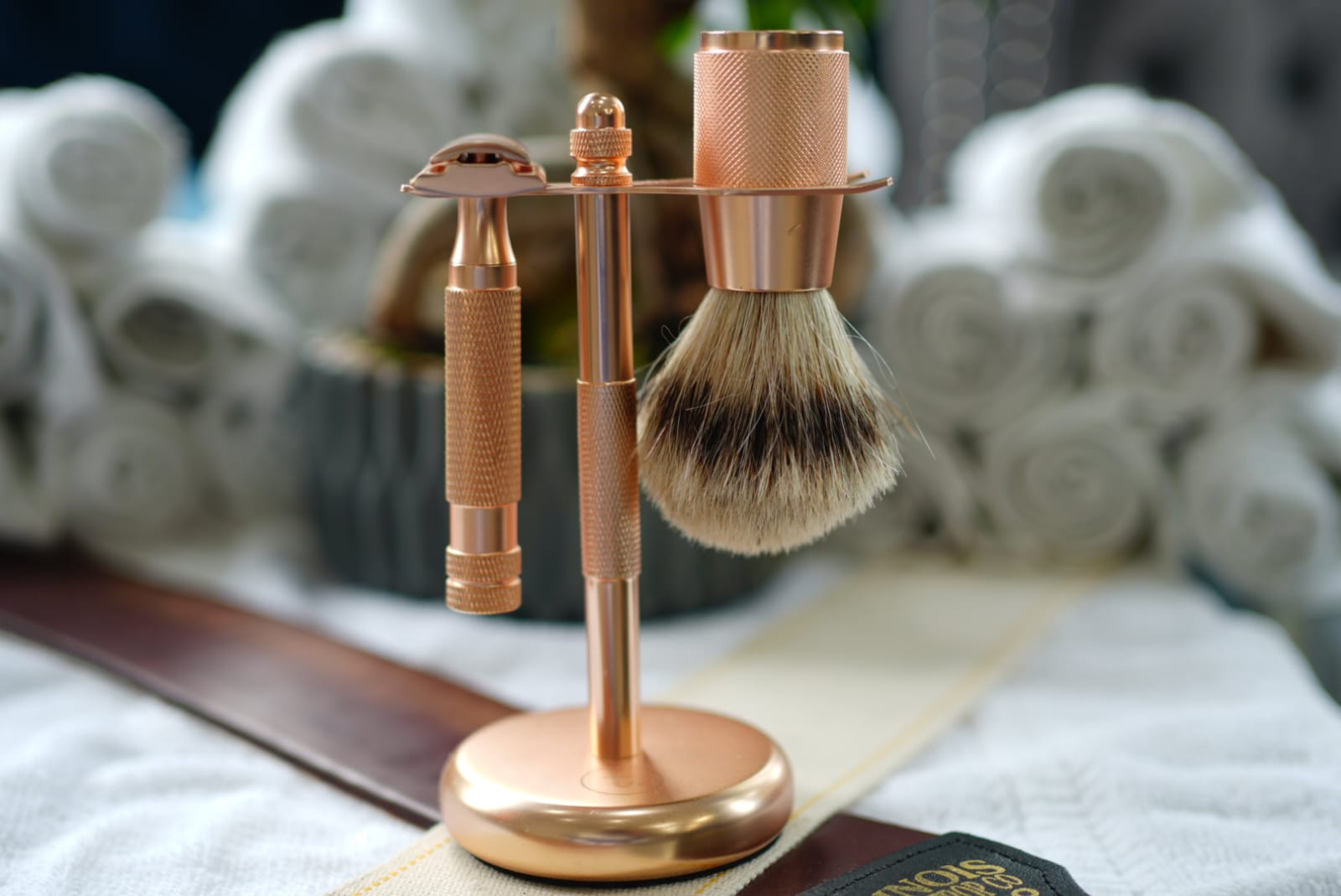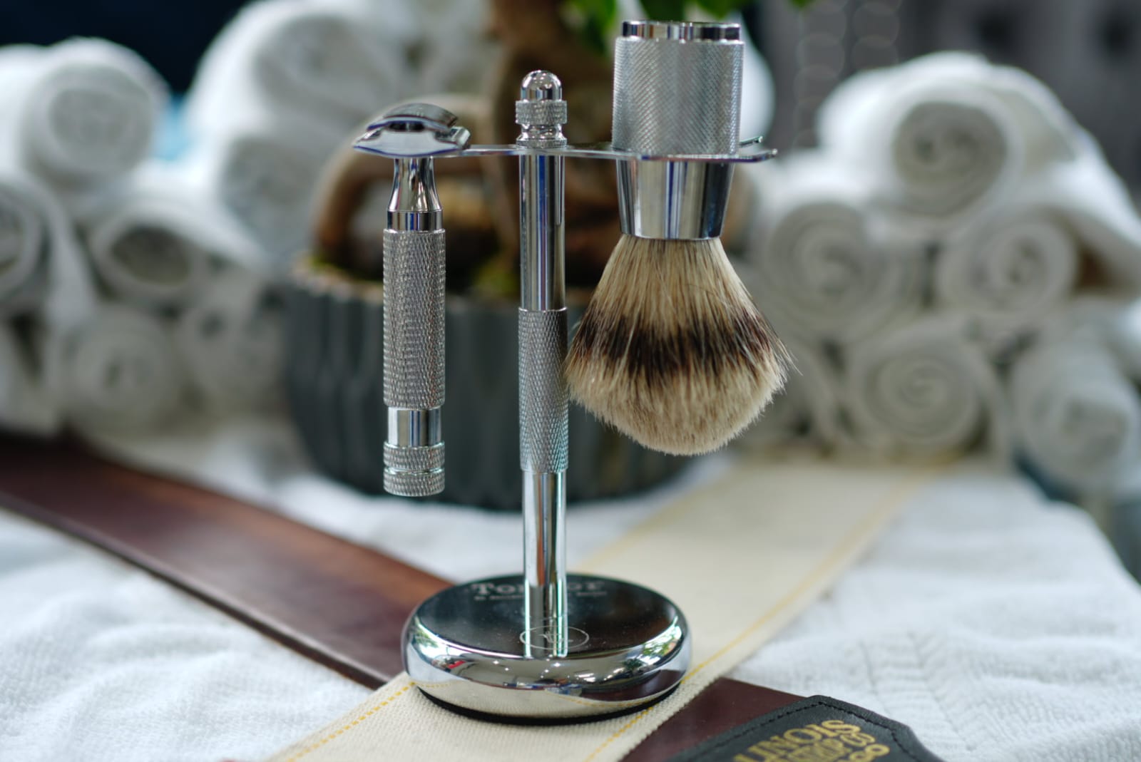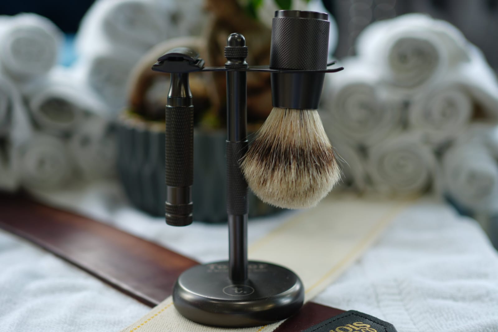 - A matching stand to hold the brush and razor